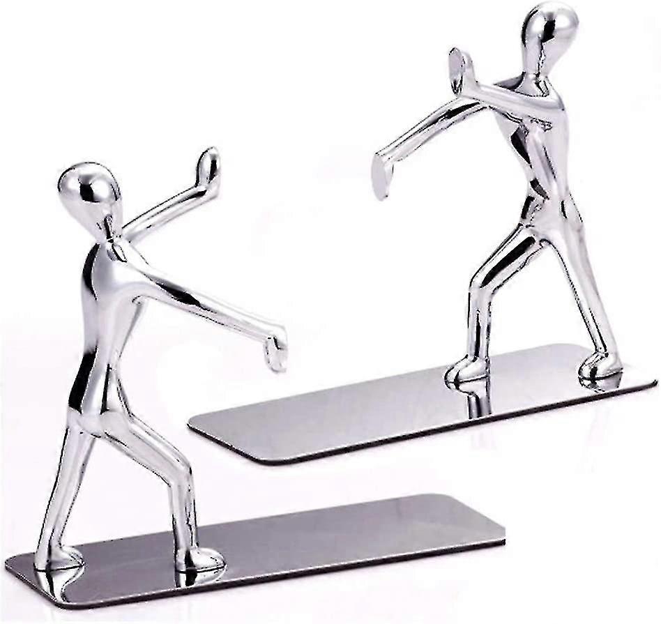 Heavy Bookends: The bookends are made of stainless steel, anti-rust, anti-corrosion, will not crack or break, not only provide durability and durability, but also creative, shiny, elegant and delicate.Practical silver bookends: the heavy books are very lightweight, notebooks, textbooks, files, office documents, so they are not easy to tip, also ideal for DVD ends and video game end times.Creative man design: art and interesting art figures, perfect for combining with your bookshelf, desk and all kinds of books, it is wonderful, decorate your room and keep your books organized and in view.ANTI-SLIP DESIGN - Unlike normal book covers, it is equipped with non-slip padded bases that are attached to its foot, ensuring that any number of books can be leaned on its extended arm without slipping.Wide applications: it can be placed on your kitchen worktop to hold cookbooks, use it to hold office files on your desk or support your favorite books, DVD collections on the shelf etc.Colour: silverProduct includes: 2pcsSize: 18.5*7*15.5 cmNotes:Please allow 1-3cm error, due to manual measurement, please make sure you don't mind before bidding.Due to the difference between different monitors, the picture may not reflect the actual colour of the item. Thank you for your support