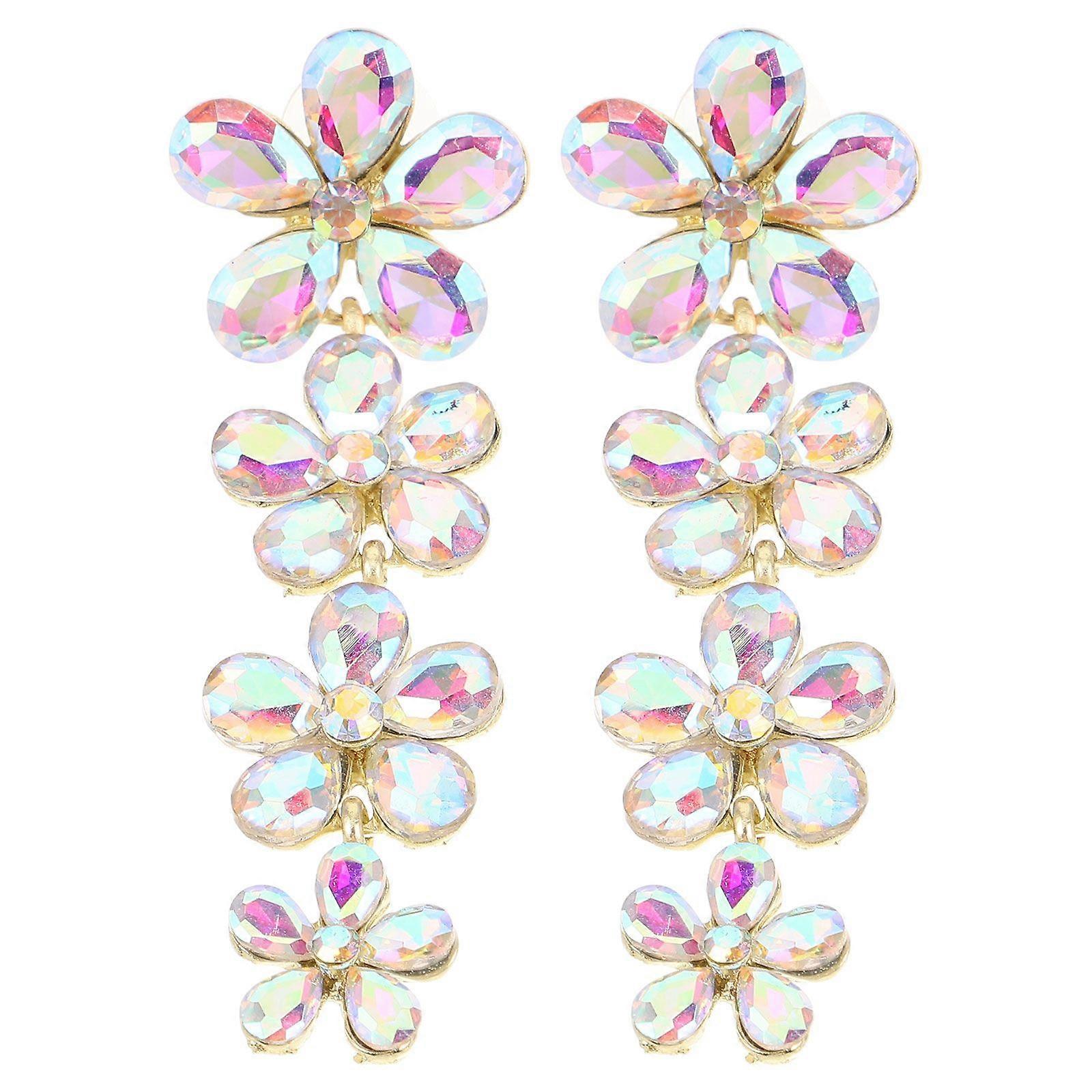 1 Pair Bridal Long Floral Earrings Flower Drop Dangle Earrings For Wedding Bride Party And Special Occasions