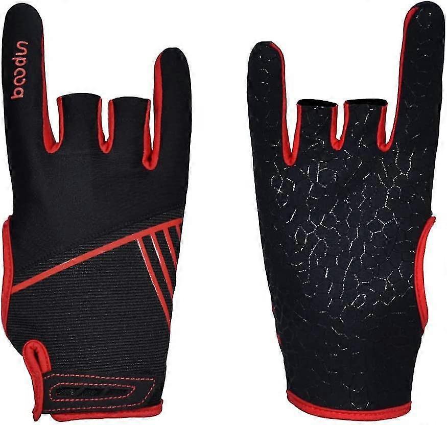 1 Pair Professional Anti Skid Bowling Gloves Semi Finger Sports Gloves Mittens Size L/XL (Red)