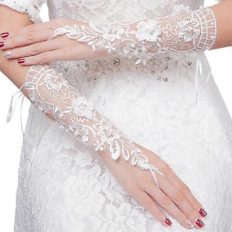 1 Pair Fashion Bride Lace Embroider Flower Dew Finger Gloves Hollow Out Bandage Gloves Wedding Dress Accessories St2023 (white)