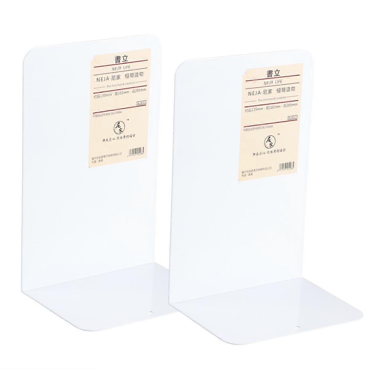 1 Pair Metal Bookend Heavy Duty and Decorative Modern Design with Non-Skid Base (White)