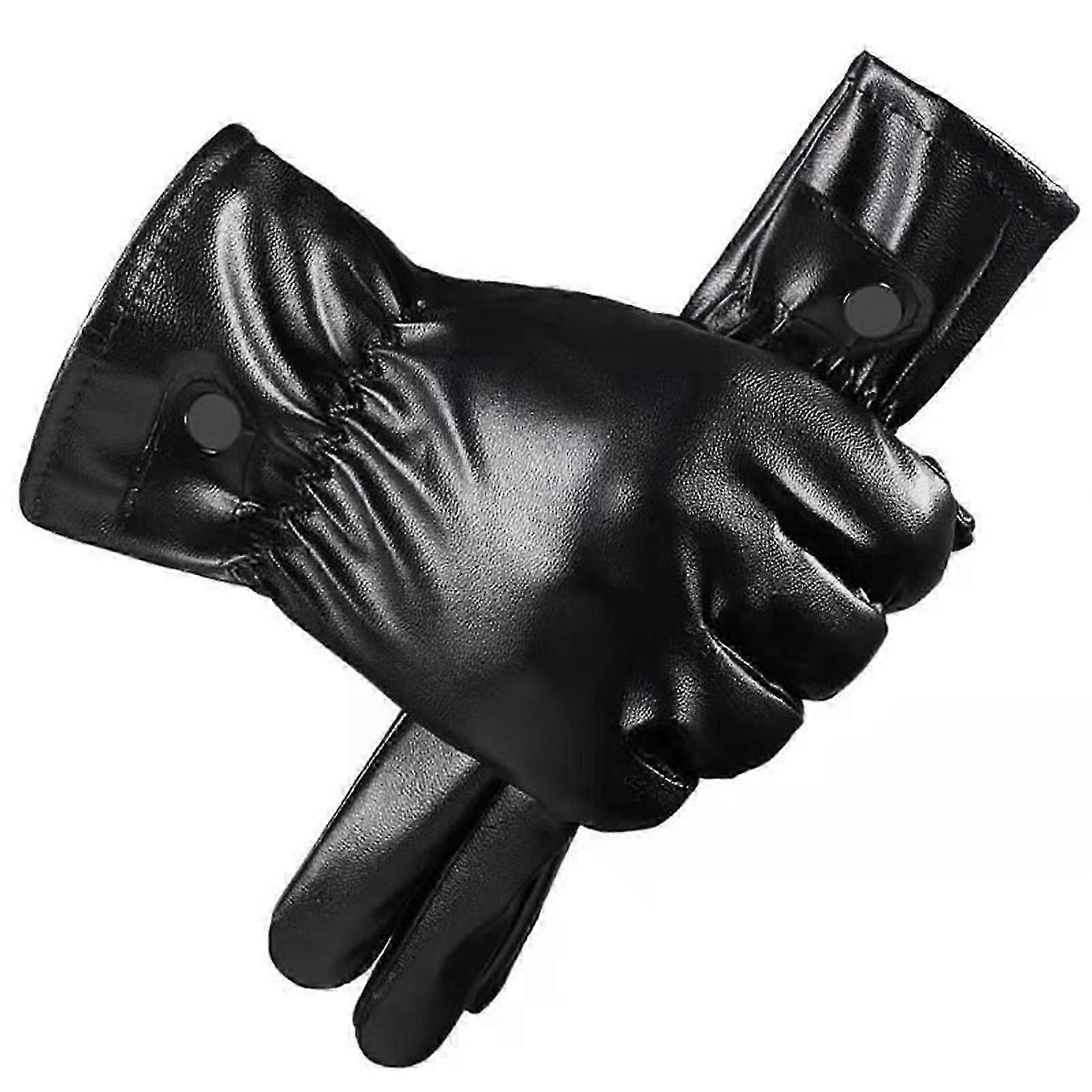 1 Pair Men Motor Gloves Windproof Smooth Faux Leather Solid Color Elastic Wrist Fiver Fingers Warm Touch Screen Anti-slip Men Riding Gloves