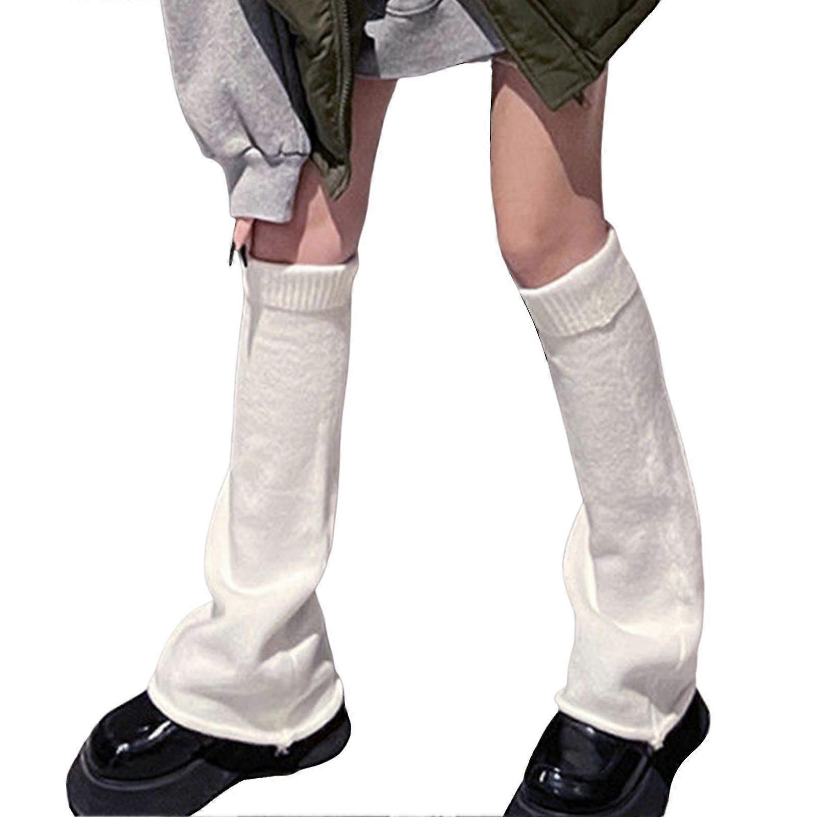 1 Pair Leg Warmers Flared Knitted Thickened Knee High Stretchy Keep Warm Solid Color Autumn Winter Women Boot Stockings