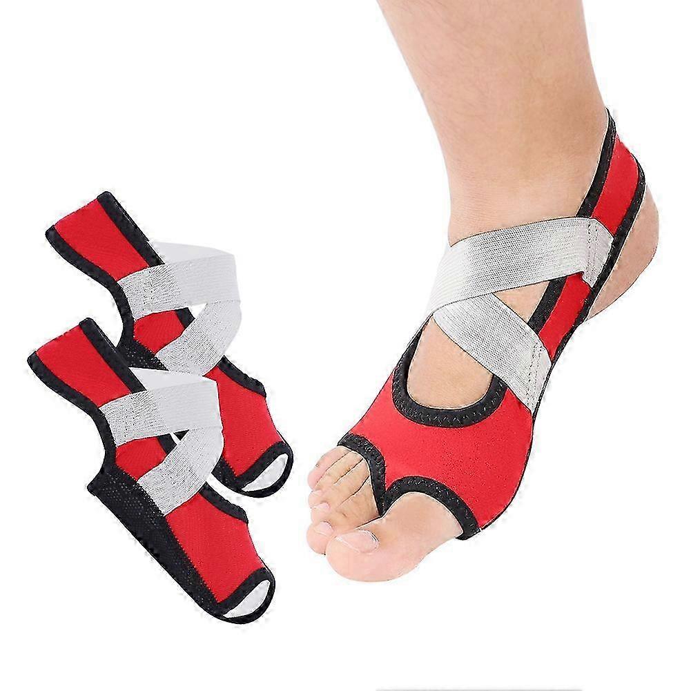 1 Pair Red S Women Yoga Non-slip Pilates Barre Soft Wrap Open-toed Dance Training Shoes--