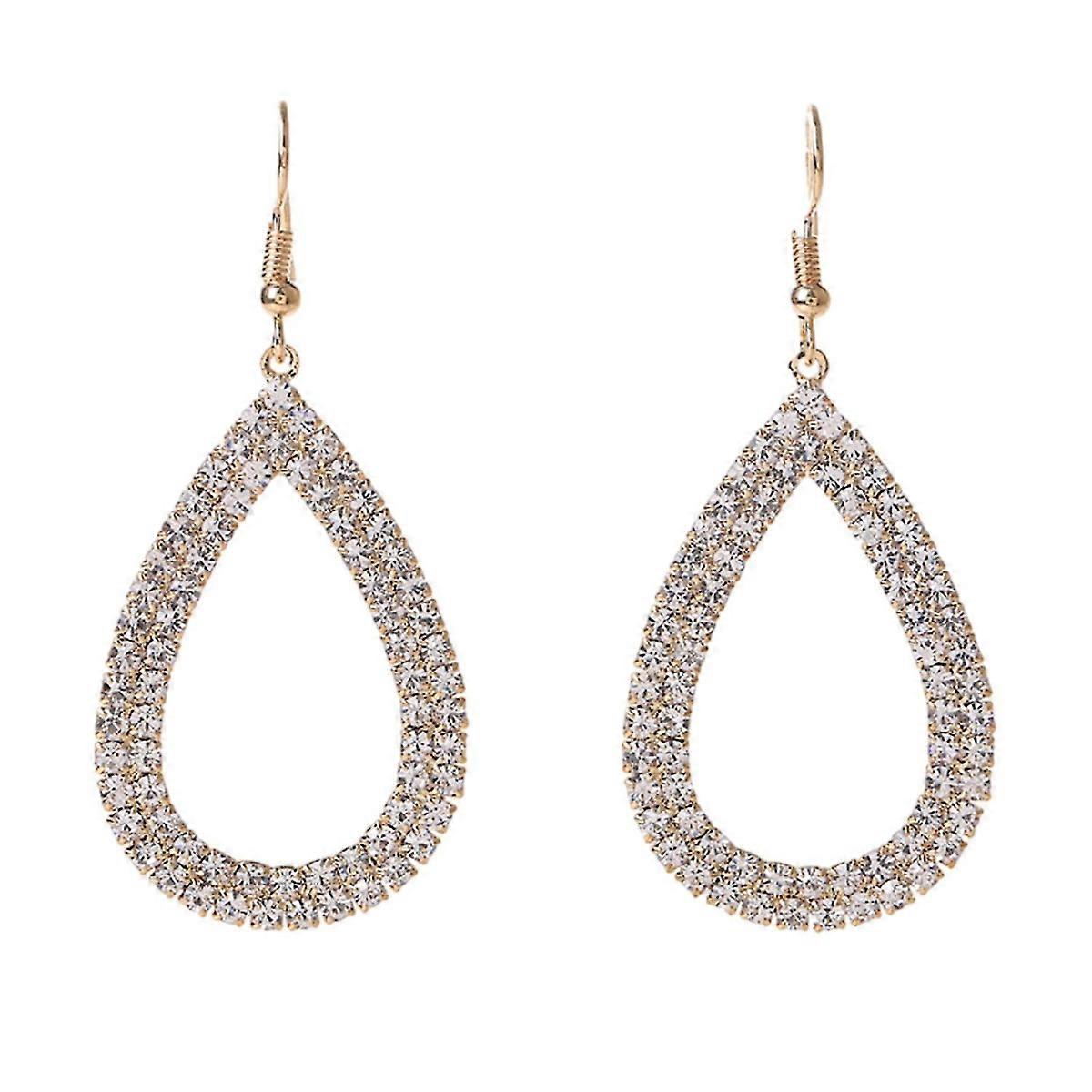 1 Pair Hollow Waterdrop Hook Earrings Double Row Rhinestone Luxury Elegant Dangle Earrings