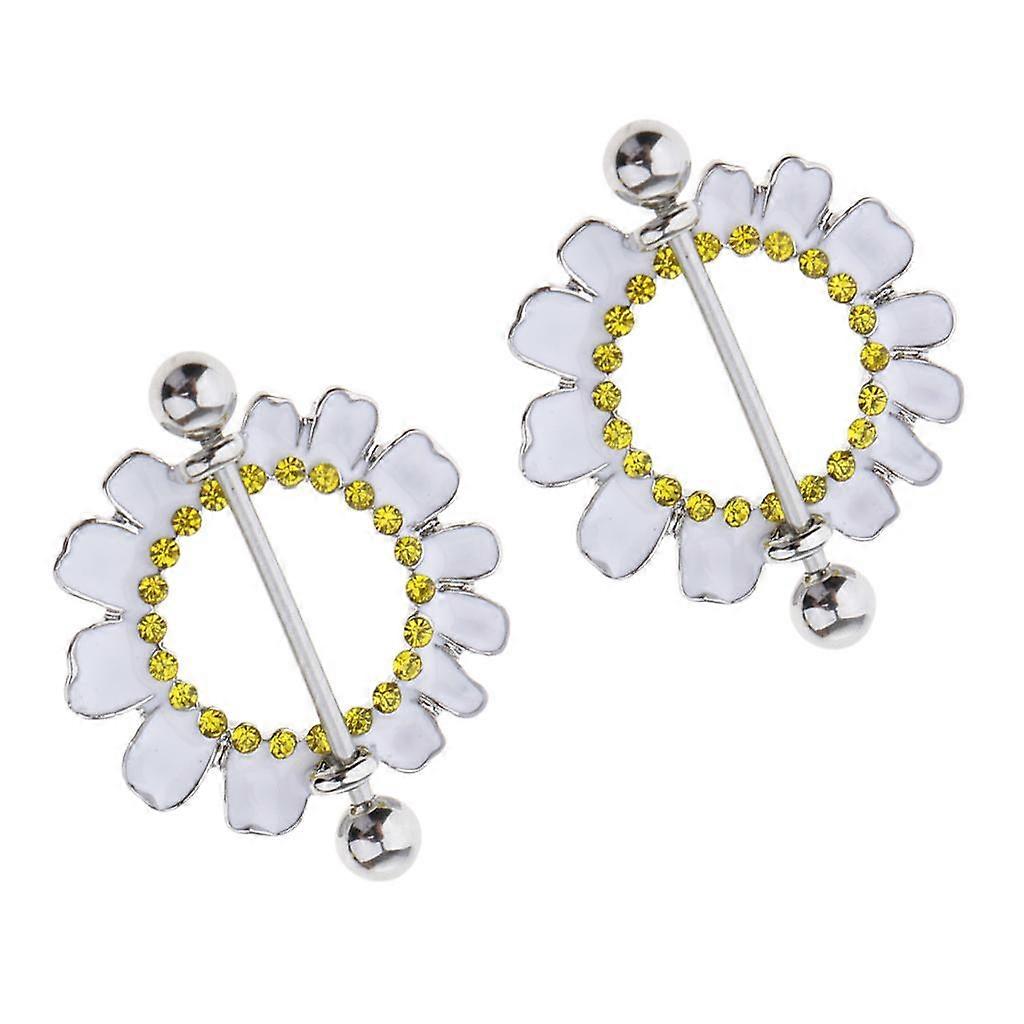1 Pair Chrysanthemum Daisy Flower Nipple Rhinestone Shield Nipple Ring White