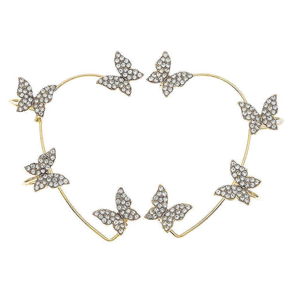 Description Feature excellent workmanship and fine detail, crafted from metal and studded with rhinestone, thisbutterfly ear cuffwill be a nice choice for your dressingup.Uniquebutterfliesstyle cuff earrings can be worn at almost any festival and occasion to show your perfect and elegant temperament. Features -Color:As Shown,Golden -Material:Rhinestone, metal -Size:6.00X3.70X2.00cm/2.36X1.45X0.79in - Made of metal and rhinestone, with good color retention, not fade easily and are safe for most skin types. - With exquisite appearance, butterfly cuffs are very suitable for parties, appointment, dating, and daily wear. - These butterfly cuff earrings with classic and elegant design can add brilliance to your daily collocation. - Exquisite in workmanship, full of elegant style, butterfly jewelry is easy to match, making you look elegant and charming - Butterfly cuff earrings would be a unique present to your loved ones, like lover, girlfriend, wife, female friends. Packing list1 x pair of ear cuff earrings