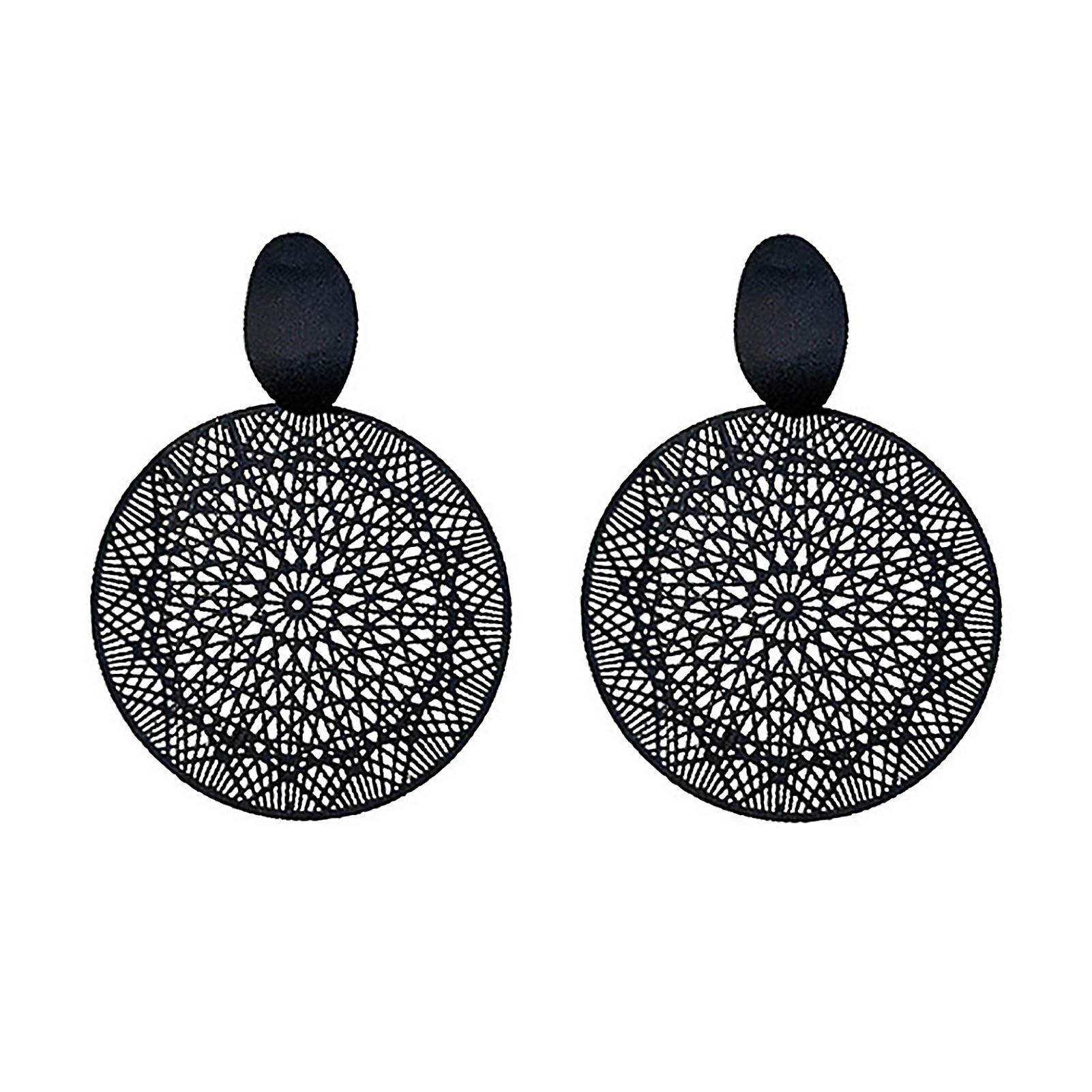 1 Pair Exaggerated Piercing Women Earrings Alloy Round Hollow-out Pattern Pendant Earrings Party Jewelry