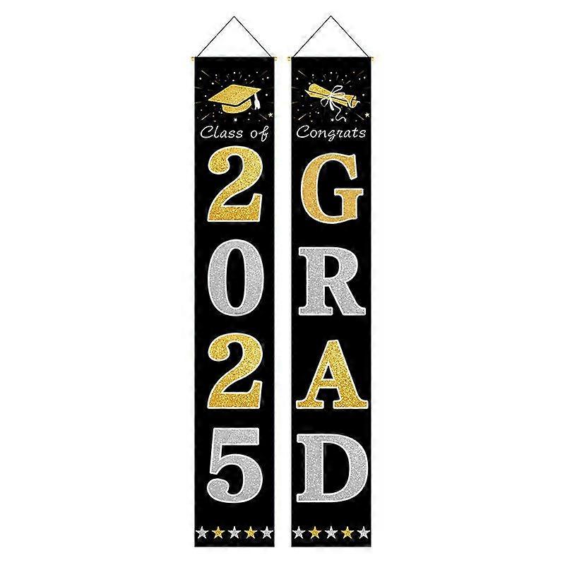 1 Pair 2025 Graduation Banner Congrats Grad Outdoor Yard Graduation Party Front Door Couplet Decorations for School Campus