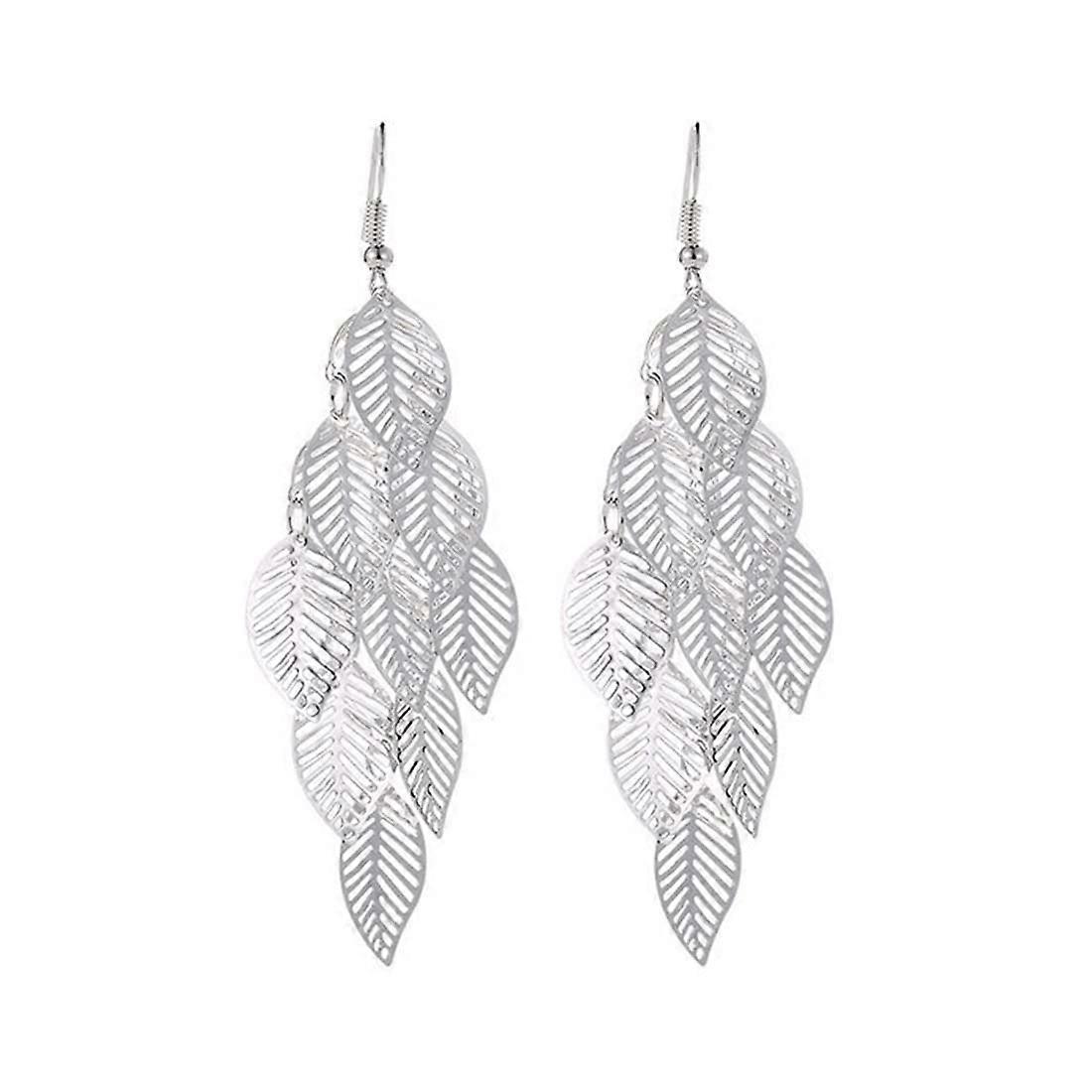 1 Pair 925 Sterling Silver Leaves Drop Earrings Long Tassel Dangle Earrings Women Jewellery, silver
