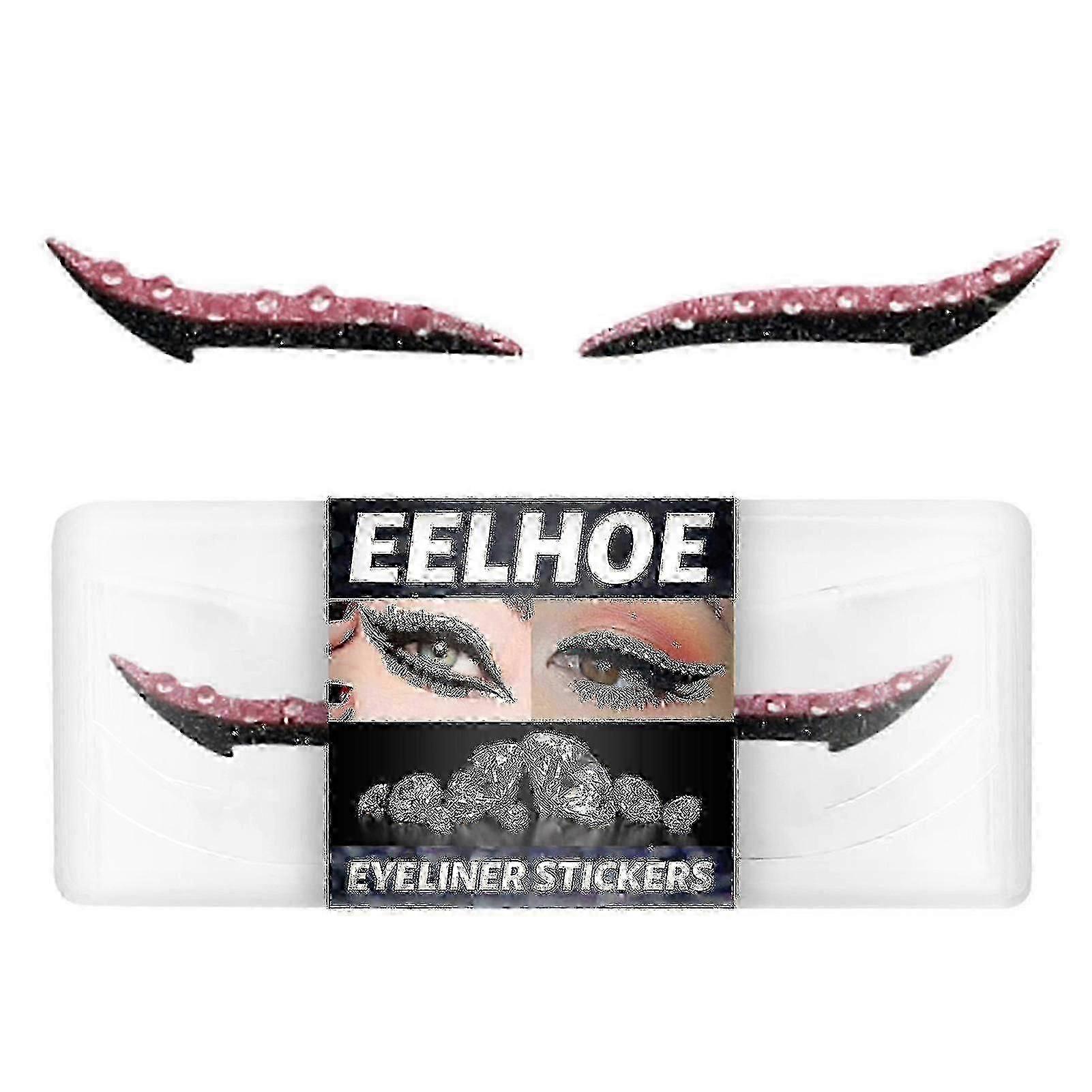 1Pair EELHOE Eye Liner Decal Reusable Tearable Plastic Rhinestone False Eyeliner Sticker for