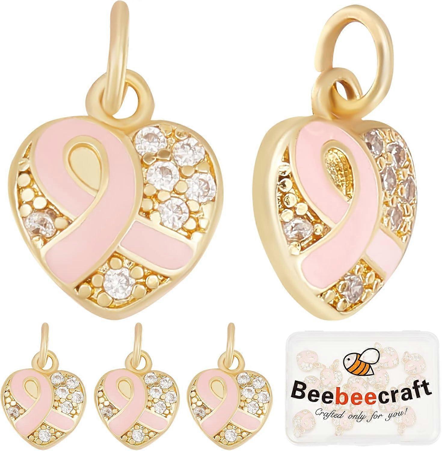 1 Box Ribbon Awareness Charms 18K Gold Plated Breast Cancer Hope Charm Pendants with Cubic Zirconia and Jump Rings for Earring Bracelet Necklace Jewel