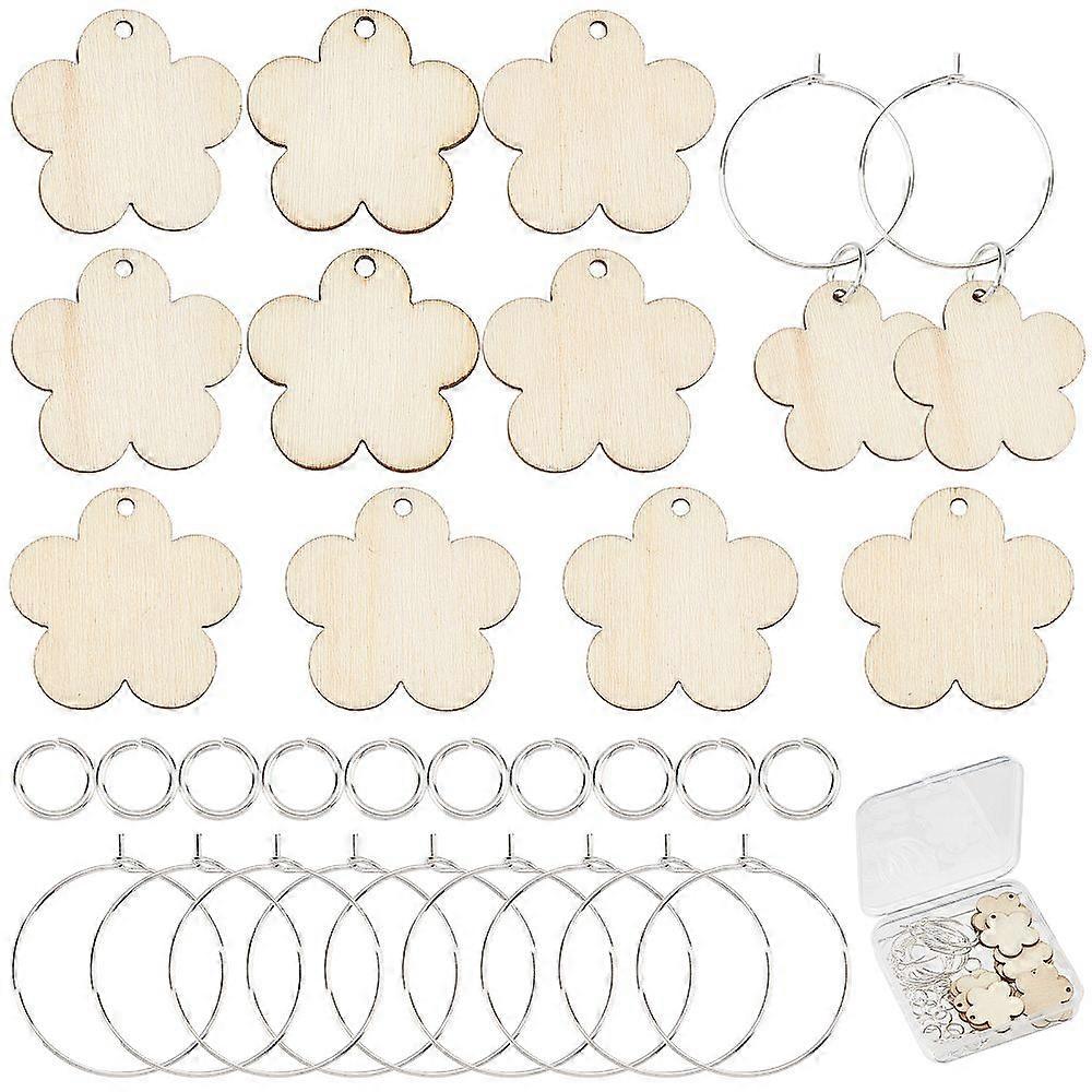 1 Box Wooden Wine Glass Charms Markers Tags Wood Flower Charm Glass Identifiers for Drinks Stem Glasses 20Pcs Wood Pendants 20Pcs Hoops 30Pcs Jump Rin