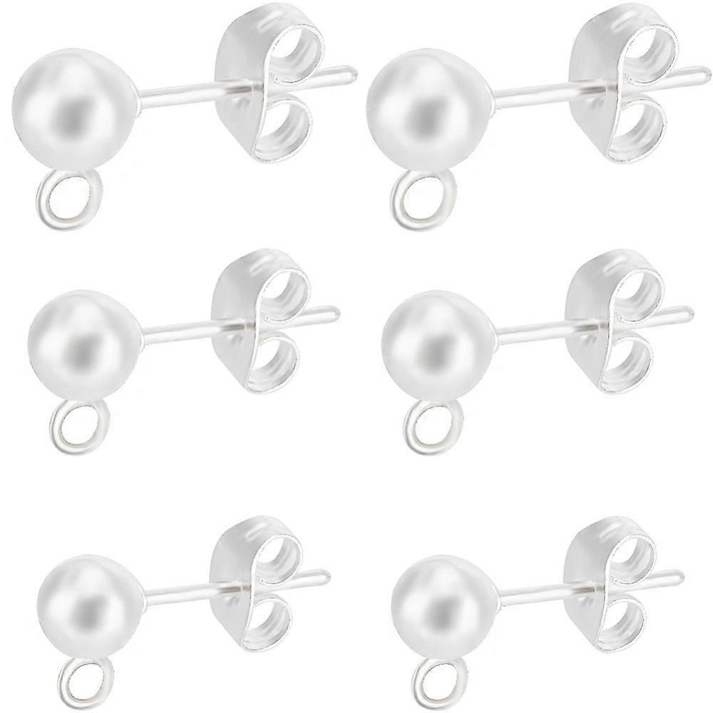1Box 60Pcs 3 Style 304 Stainless Steel Ball Stud Earring Post Stud Earring Findings with Vertical Loops & 60Pcs Ear Nuts Silver 14~16x3~5mm Hole: 1.8~