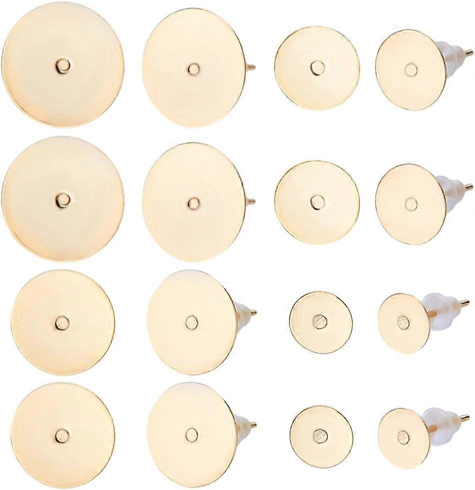1 Box 160Pcs 6/8/10/12mm Blank Post Earring Studs 24K Gold Plated Flat Round Stud Earring Findings with 160Pcs Ear Nuts for DIY Jewelry Dangle Earring