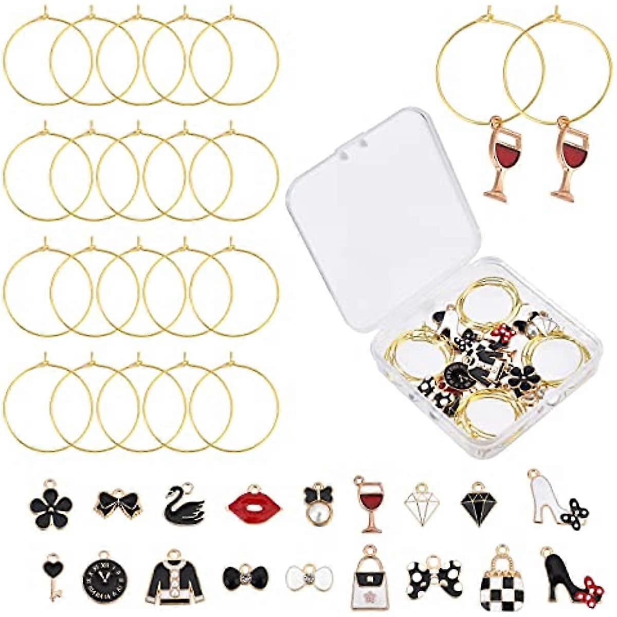 1 Box 18 Sets 18 Styles Wine Glass Charms Rings Wine Glass Markers Alloy Enamel Charm Pendants Funny Drink Markers Tags Designer Charms for Stem Glass