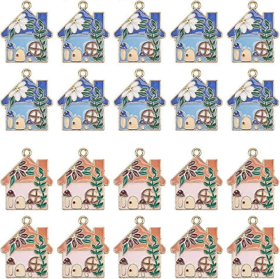 1 Box 20Pcs Enamel House Charms Bulk Home Charm Golden Metal Alloy Blue Pink Plating Fairy Houses Shaped Small Dangle Charm for Jewelry Making Charms