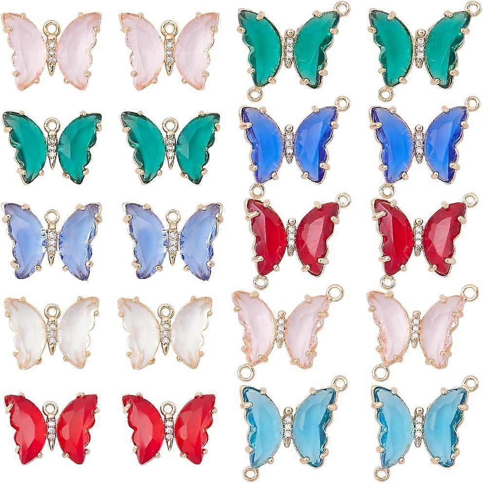 1 Box 20Pcs Crystal Butterfly Charms Colorful Rhinestone Glass Butterflies Beads Red Green Blue Butterfly Linking Connector Charms Double Loops Animal