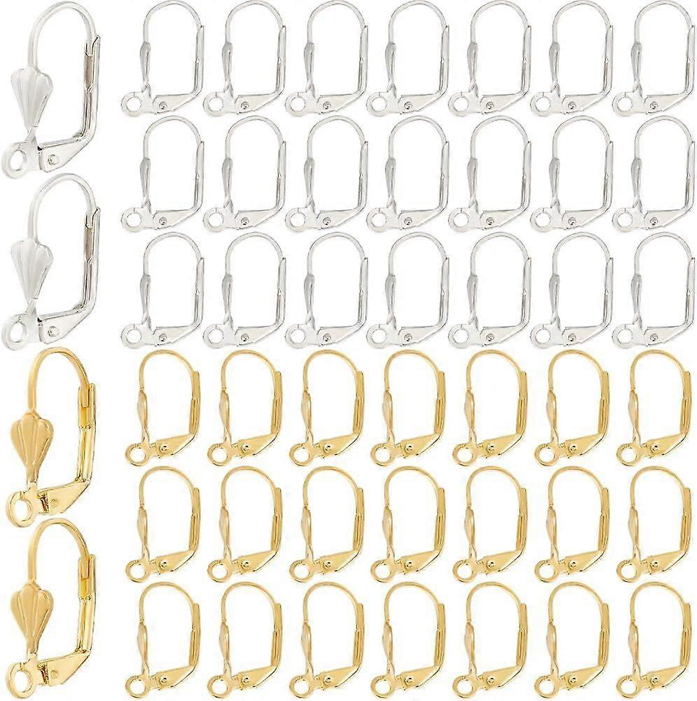 1 Box 200Pcs Leverback Earring Hooks Gold Earring Findings Bulk Brass Silver French Hook Ear Wires Small Dangle Huggie Lever Back Earring Hooks for Je