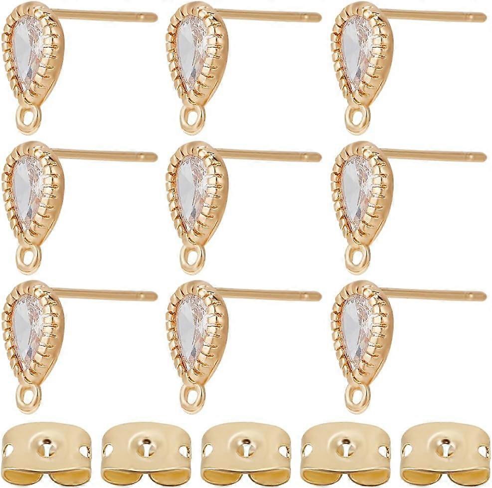 1 Box 20Pcs Stud Earring Finding 18K Gold Plated Cubic Zirconia Geometry Teardrop Studs Earring with Loop and 20Pcs Ear Nuts for Jewelry Earring Makin