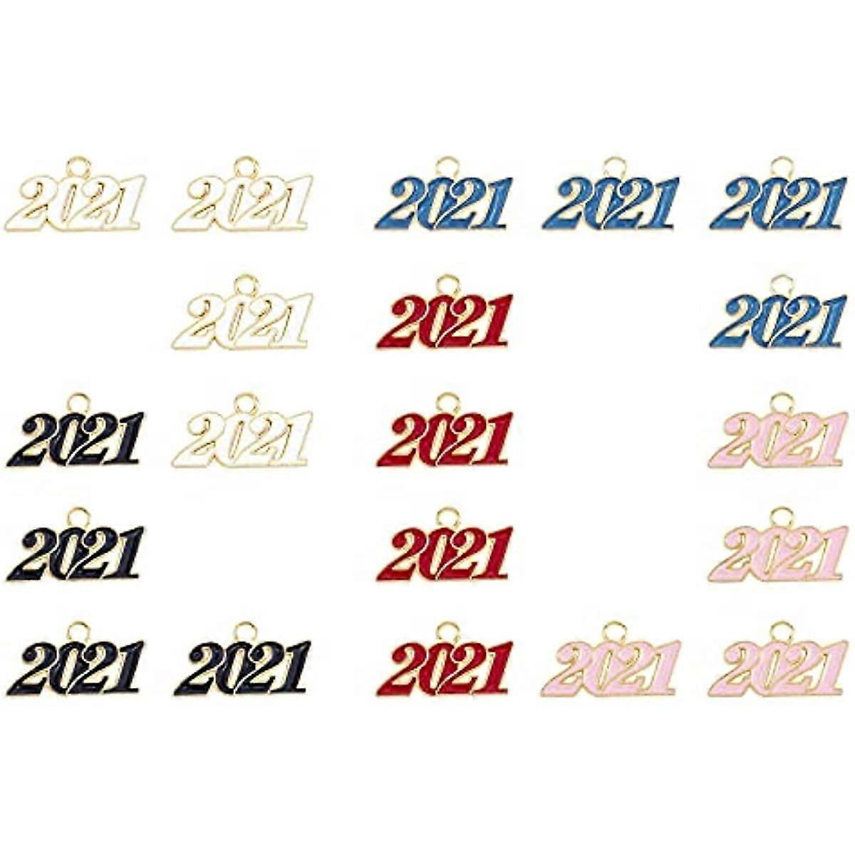 1 Box 20Pcs Alloy Enamel 2021 Charms New Year Number Colorful Pendants Jewellery Accessories