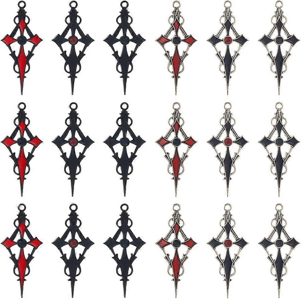 1 Box 24Pcs 6 Color Gothic Cross Charms Bulk Halloween Red Black Rosary Silver Alloy Rhinestone Enamel Crosses Charm for Jewelry Making Charms Necklac