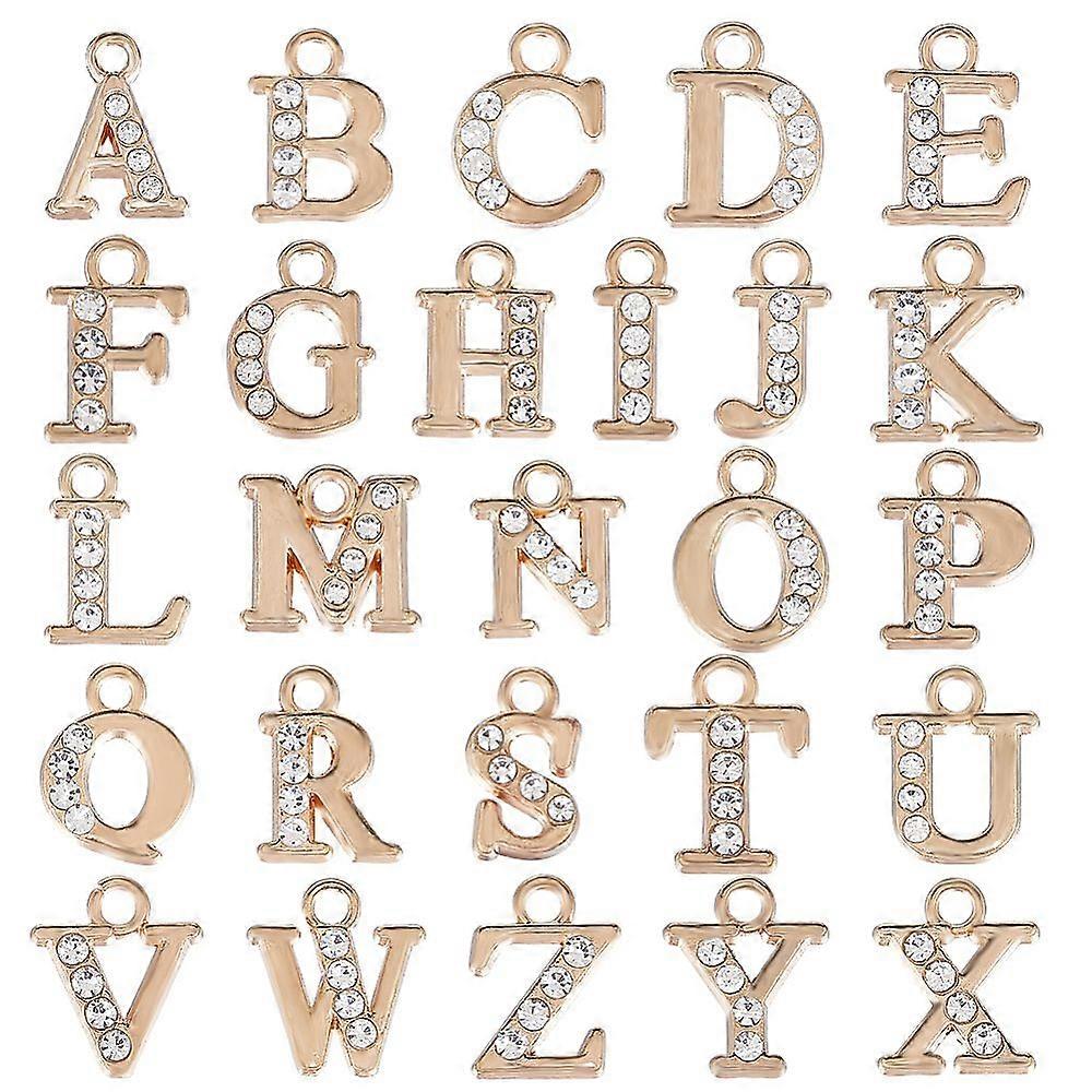 1Box 52Pcs 26 Style Alloy Rhinestone Pendants Initial Letter Alphabet Light Gold Letter A~Z 10.5~13x5.5~11.5x2~2.5mm Hole: 1.8~2mm 2Pcs/style