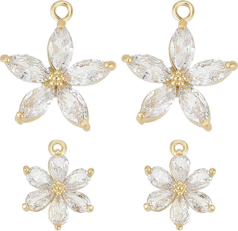 1 Box 6Pcs 2 Style Cubic Zirconia Flower Charms 18K Gold Plated Floral Daisy Crystal Rhinestone Pendant Charms with Jump Ring for Jewellery Making DIY