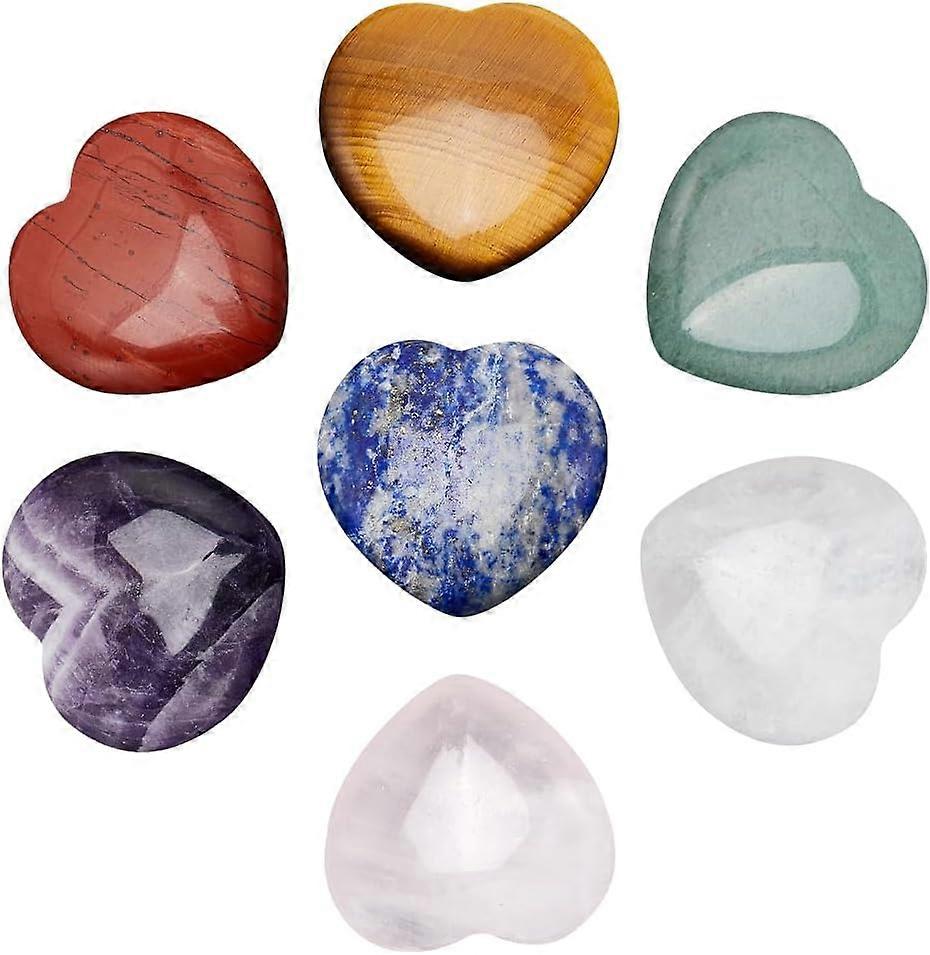 1 Box 7Pcs Heart Healing Stones Natural 7 Chakras Heart Love Worry Stones for Energy Balancing Meditation (7 Colors) DIY