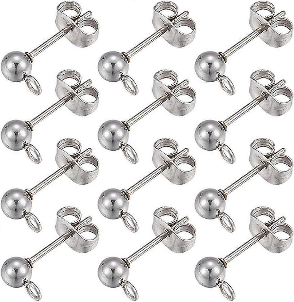 1 Box 80Pcs 20 Pairs Ball Post Earring Studs 304 Stainless Steel Earring Post Earring Post with Loop 4mm Ball Earring Studs for Jewelry Making Accesso