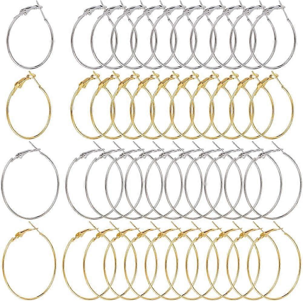 1 Box 80Pcs 4 Style Round Beading Hoops Small Hoop Earring Findings Circle Iron Hypoallergenic Gold Dangle Hoop Earrings Open Silver Hoop Earring Find