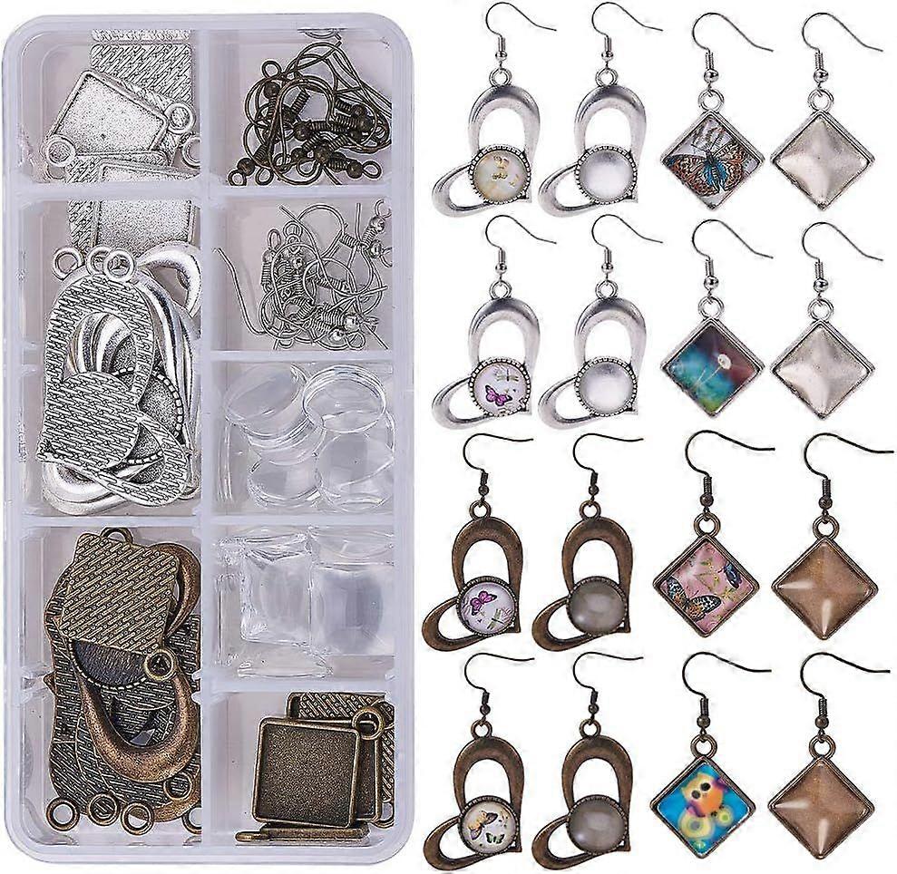 1 Box DIY 12 Pairs Heart Square Valentine's Cabochon Earrings Making Kits Round Square Dangle Tray Earring Settings 14mm 15x15mm Clear Glass Dome Cabo