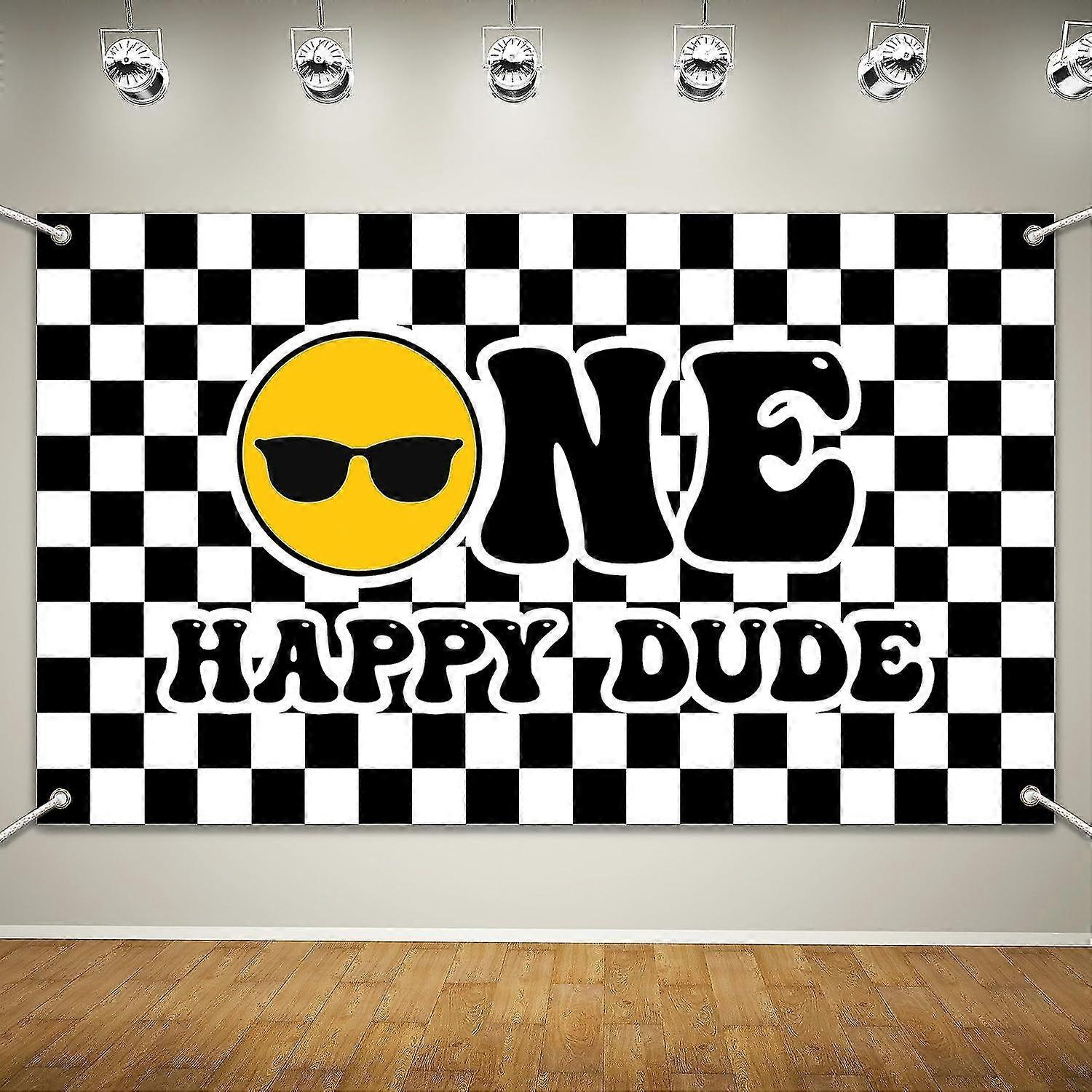 One Happy Dude 1st Birthday Backdrop First Birthday Party Decorations For Boy Background Banner Cake Table Decor Photobooth Gift Prop Fabric 72.8 X 43