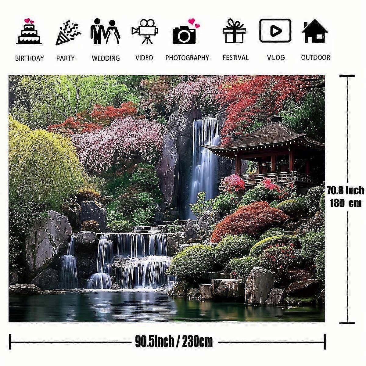 1pc, Retro Japanese Garden Scenery Photography Background with Waterfall, Maple Tree, and Bridge - Perfect for Travel, Portrait, and Studio Props
