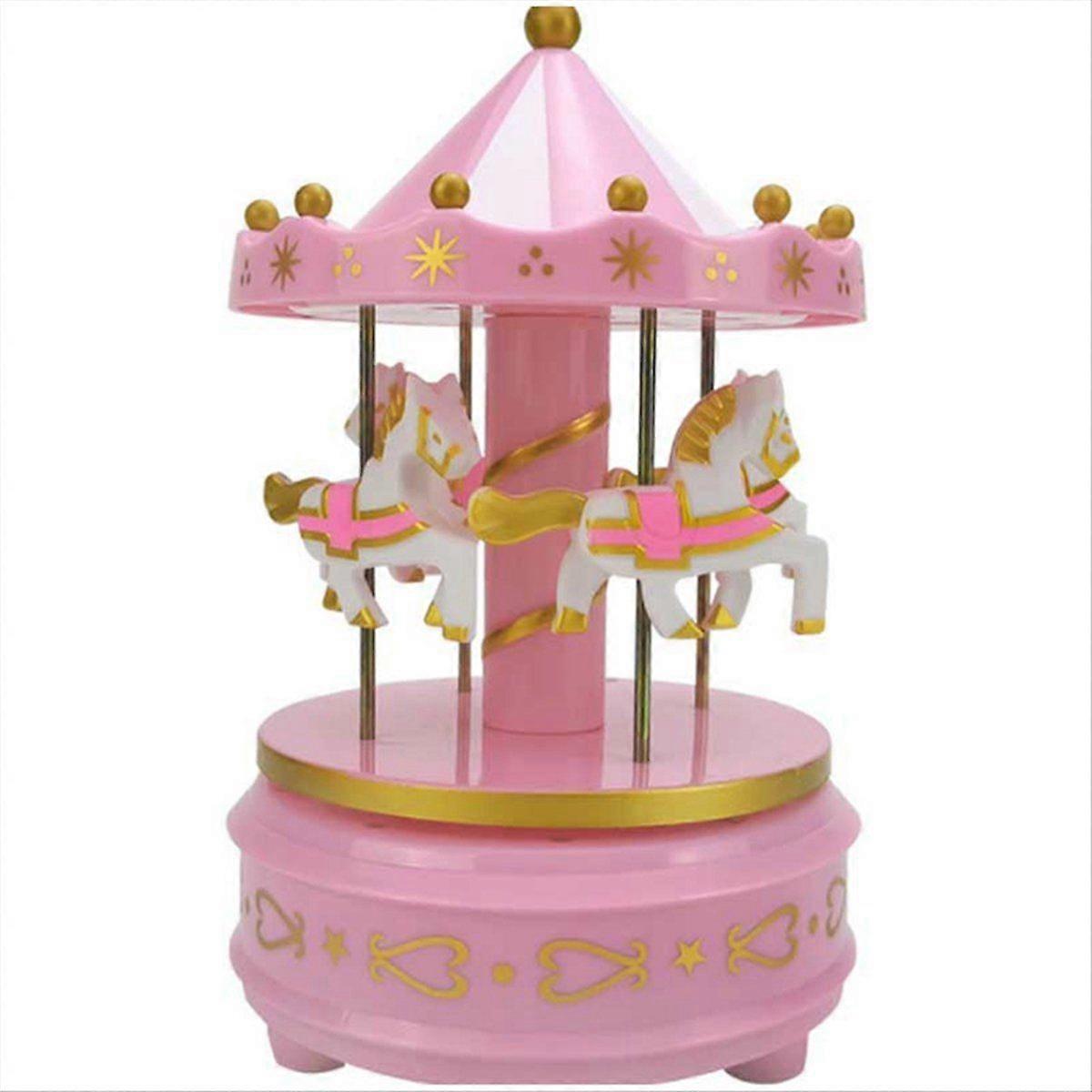 Product Name:Merry-go-round music box Colour:Pink Material:plastic Package Contents: 1 x Wind-up Carousel Music Box Only the above package content, other products are not included. Note: Light reflection and different displays may cause the color of the item in the picture a little different from the real thing. The measurement allowed error is +/- 1-3cm.