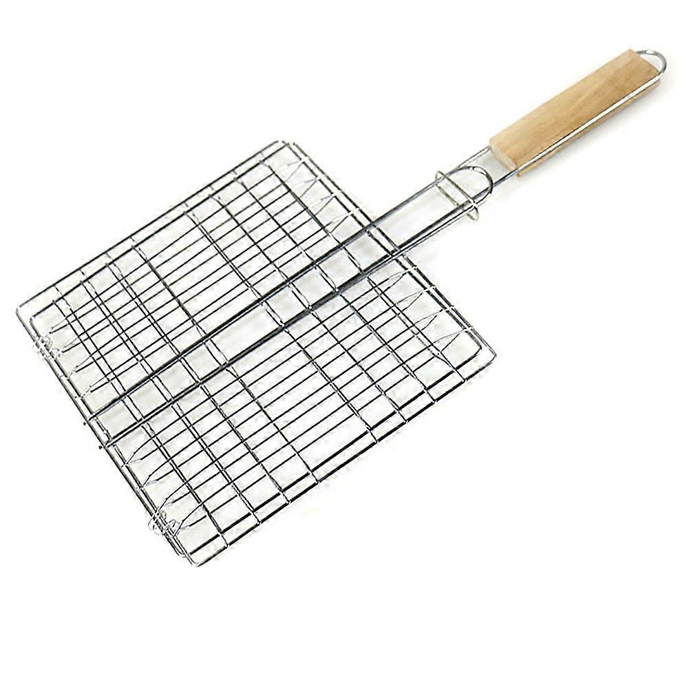 1 Pcs Barbecue Grilling Basket Wire Grid Rack Foldable Basket Roast Outdoor Wooden Handle Garden Barbecue Cooking Tool