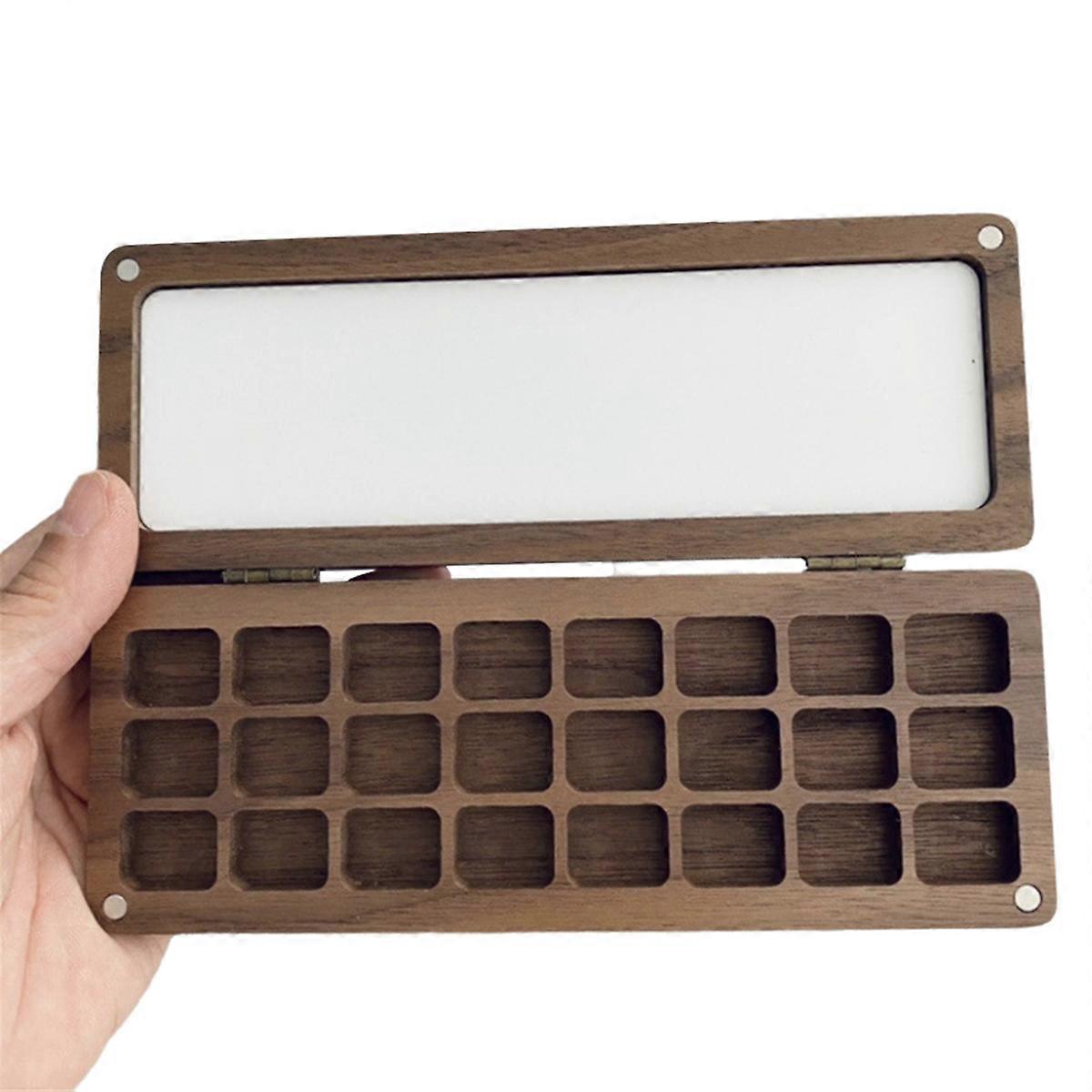 1pc Black Walnut Wood Rectangle Painting Box with Palette Half Pans for Watercolor Subpackage Storage Art Supplies