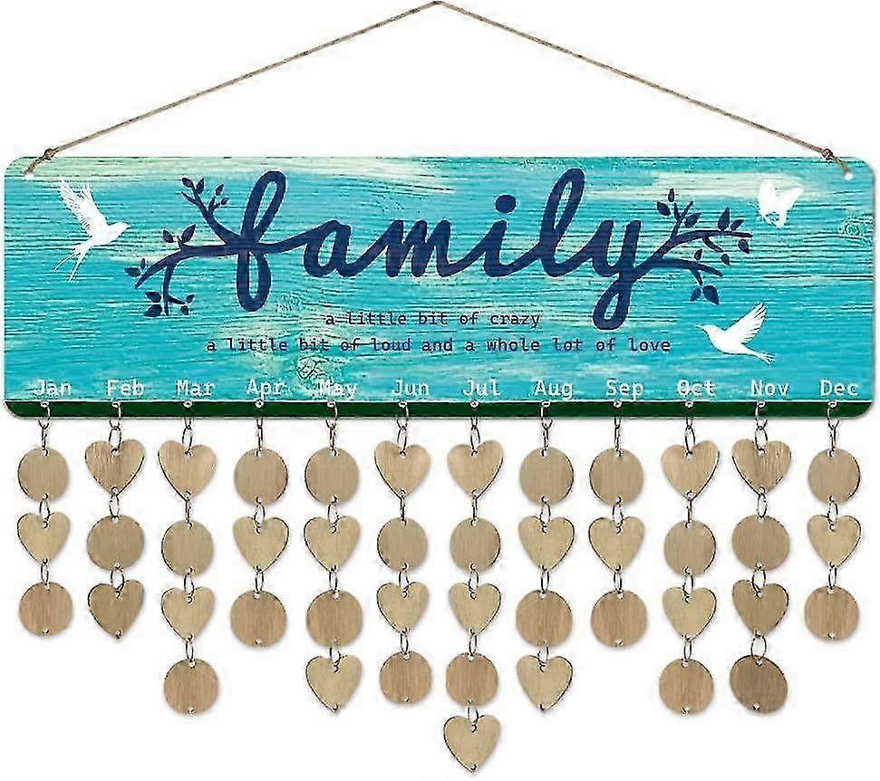 What You Get -- The set comes with 1pc family birthday plaque, 50 pcs round and 50 pcs heart tags and 1m rope, a whole set for you to DIY, the board is about 4.7inch(12cm) wide, 15.7inch(40cm) long, ideal to hang on most of the walls Sturdy and Durable -- The birthday calendar wall hanging is made of wood, which is thick and strong, hard to crack or fade. It can be used for a long time. Tip: Please hang it away from wet space Meaningful Reminding -- It is a warm tool to remind special days, just add the name and date on tag and then hang it, you will not forget and miss family or friends birthdays, celebrations, anniversaries, etc Great Gift -- The wall hanging calendar is designed with words of "family a little bit of crazya little bit of loudand a whole lot of love", and carved seagulls and twigs patterns, exquisite and beautiful, a perfect gift for family, friends on birthdays, anniversaries, Mother's Day, Christmas Enjoy Hands-on Time -- Its a nice chance to gather your family to DIY a unique home decor by creating a unique family calendar board. You have the freedom to paint the tags as you like and string the them together. Hands-on activity will be a wonderful experience to all Note: Due to the light and screen setting difference, the item's color may be slightly different from the pictures. Please allow slight dimension difference due to different manual measurement. Sold by-Dadangjia