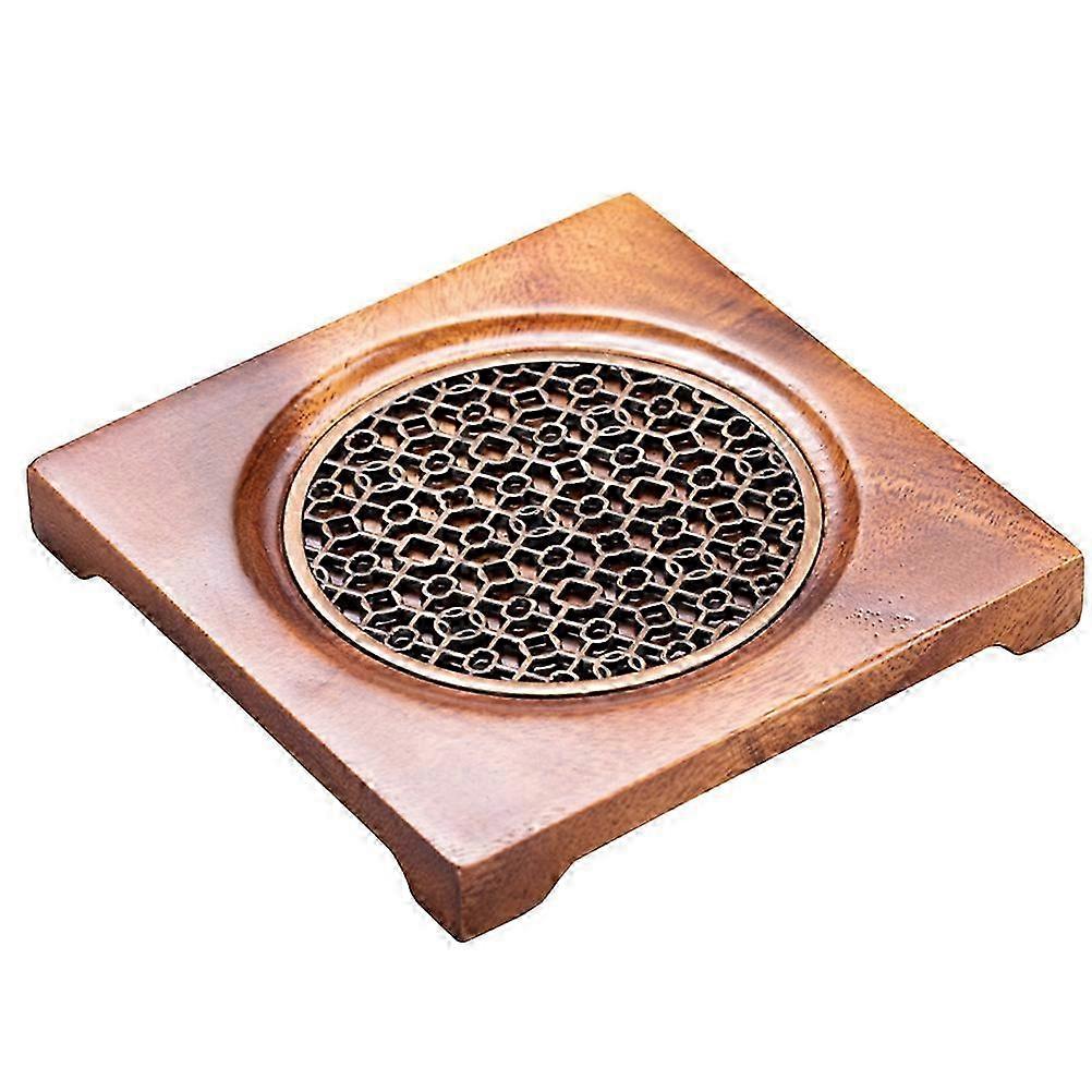 1Pc Wooden Teapot Holder Tea Kettle Storage Tray Wood Coaster Square Tea Mat-14.5X14.5X9.3CM-Coffee