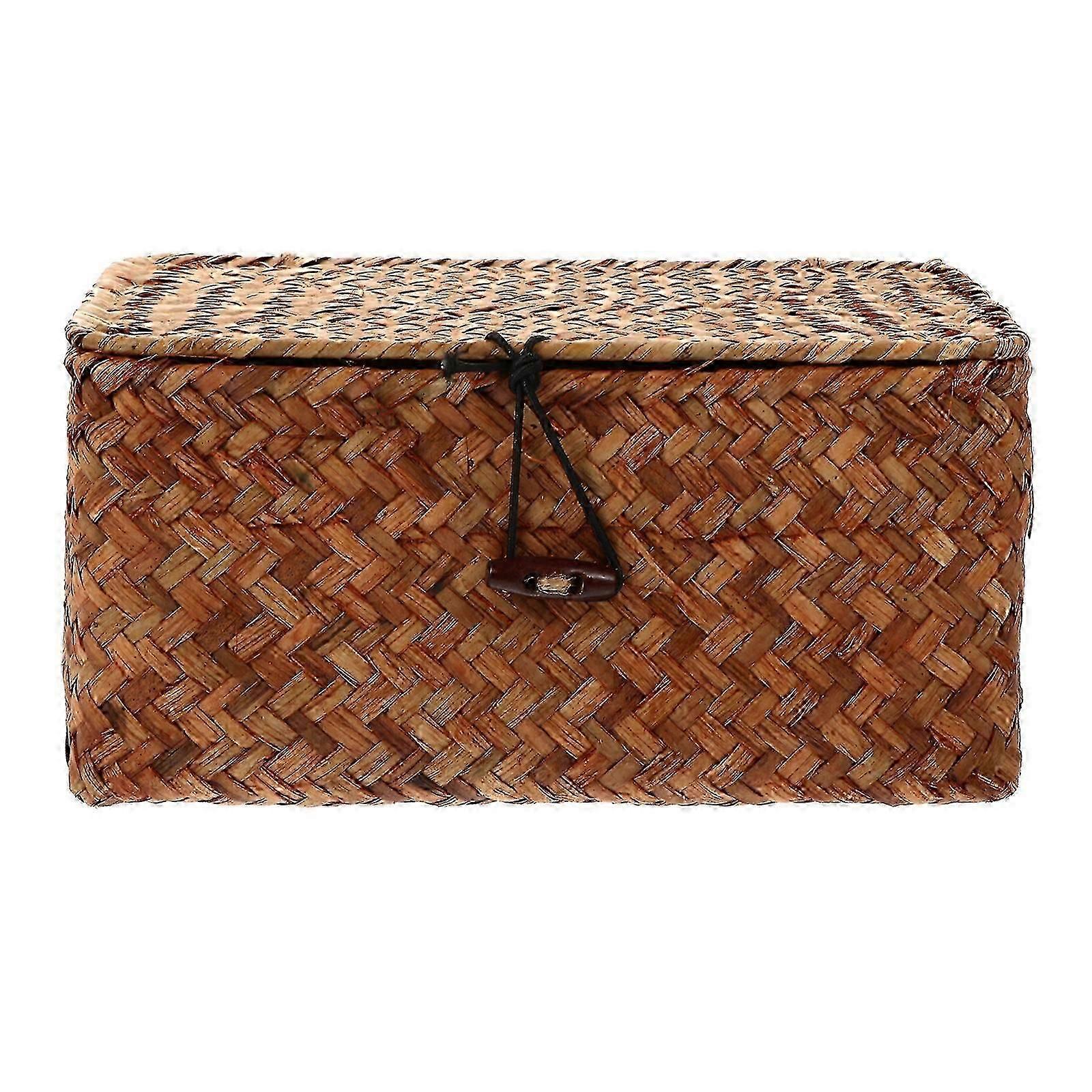 1Pc Seaweed Storage Box Seagrass Storage Case Handmade Woven Basket with Lid