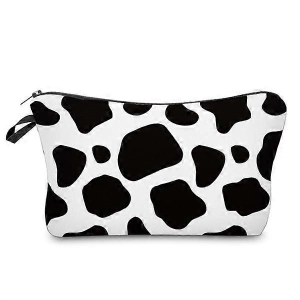Travel in style with this decorative and portable cosmetic bag. Features a charming cow pattern design, perfect for home or travel. Made from premium, durable polyester and sponge material. Lightweight and conveniently sized for easy carrying and storage. Zipper closure ensures your essentials are secure. Ideal for makeup, toiletries, and everyday essentials. Dimensions: 22 x 13.5 cm.