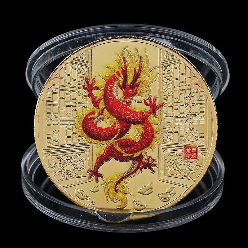 1Pc 2024 New Year Of The Dragon Commemorative Coins Painted Chinese Zodiac Medals Badge Collectibles Commemorative Gift