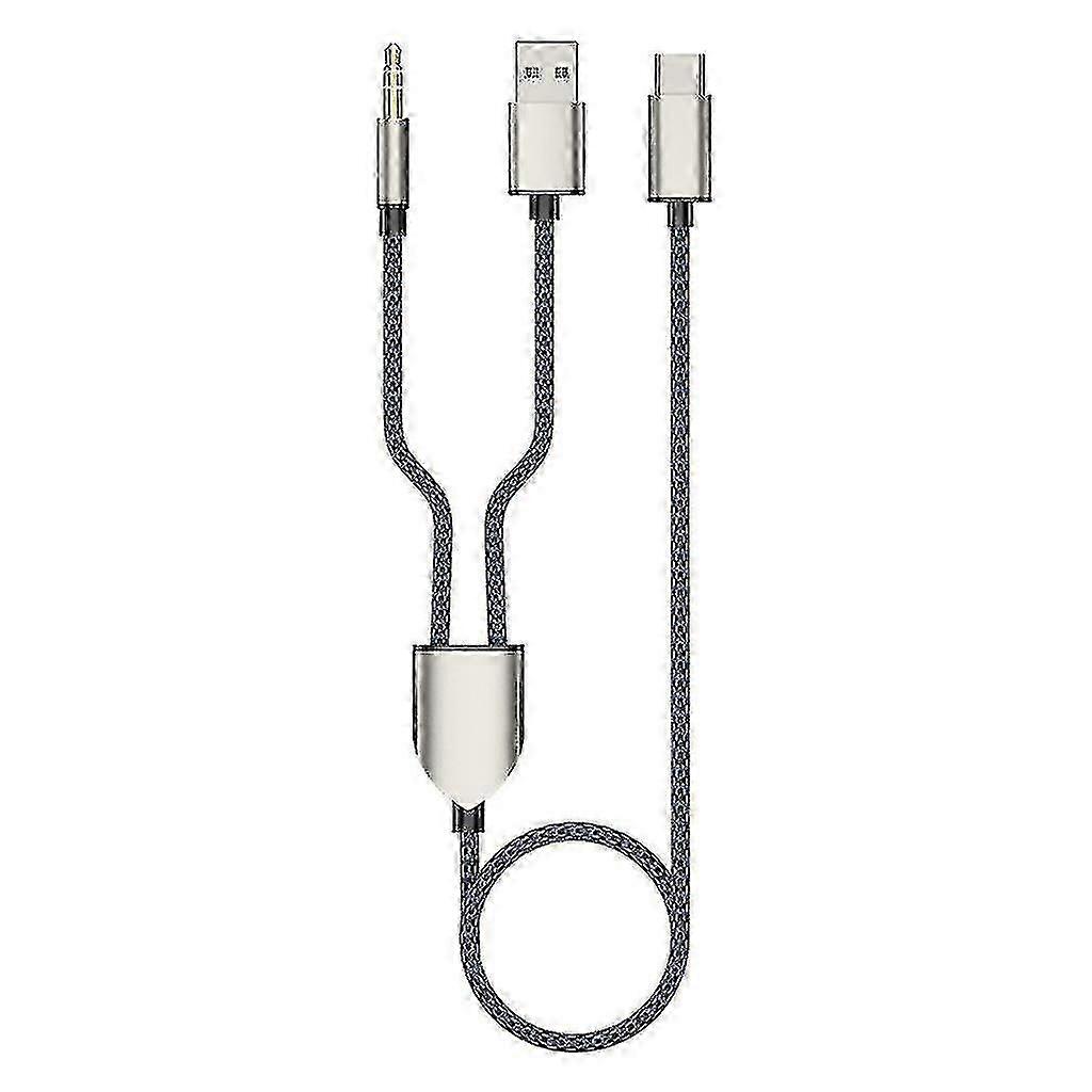 1 Split 2 Type C To Usb A 3.5mm Aux Cable Stereo Hifi Sound For Car Speakers