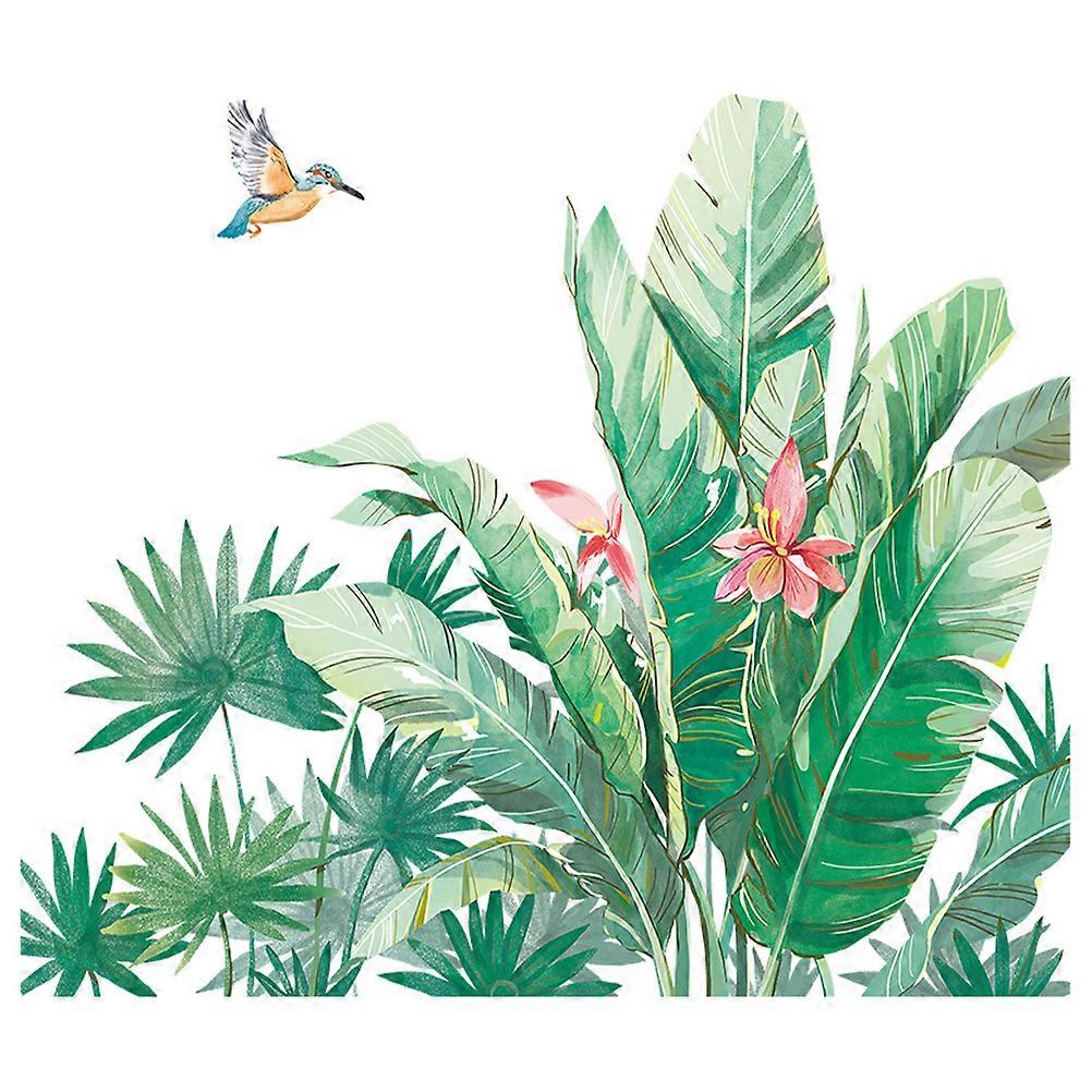 1 Sheet Green Plant Wall Stickers Plant and Bird Wall Decal Natural Leaves Bird Wall Mural for Living Room