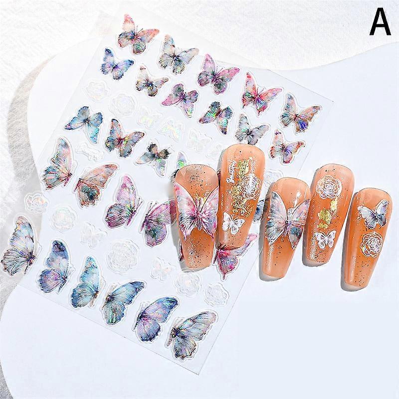 1 Sheet Colorful Butterfly 3D Nail Stickers Flowers Self Adhesive Transfer Sliders Wraps Manicures Foils DIY Decorations HOT