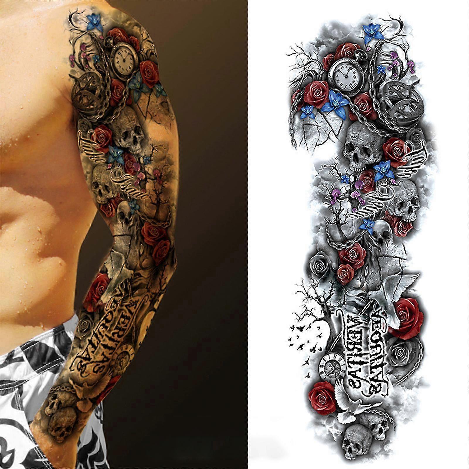 1 Sheet Full Arm Temporary Fake Tattoos Sticker Large Arm Sleeve Tattoo Waterproof Tattoos Large Vine Peony Flower Rose Tattoo Stickers for Men and W
