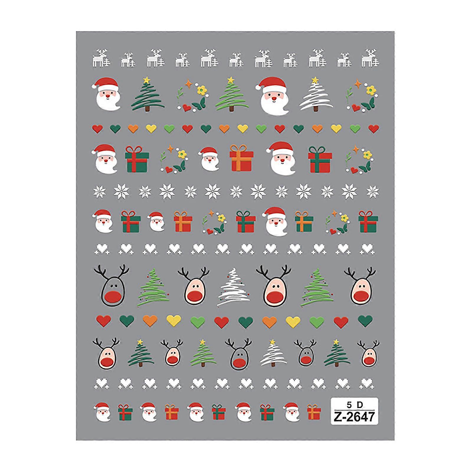 1 Sheet 5D Embossed Nail Art Stickers for Christmas Party Glittering Snowflake Santa Festive Winter Holiday Designs