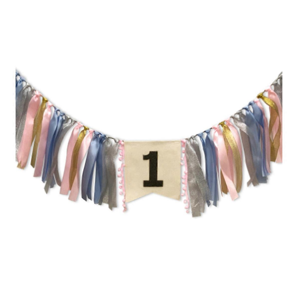 1st Birthday Party Decoration Set Blue Pink Theme Banner Photo Props Colorful Cloth Balloons Tablewa