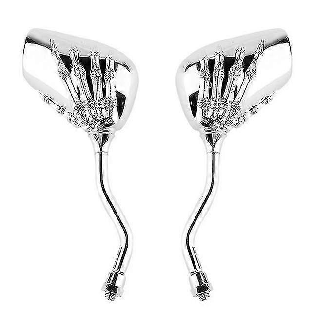 1 Pair Left Right Universal Motorcycle Chrome Skull Hands Side Rear View Mirrors