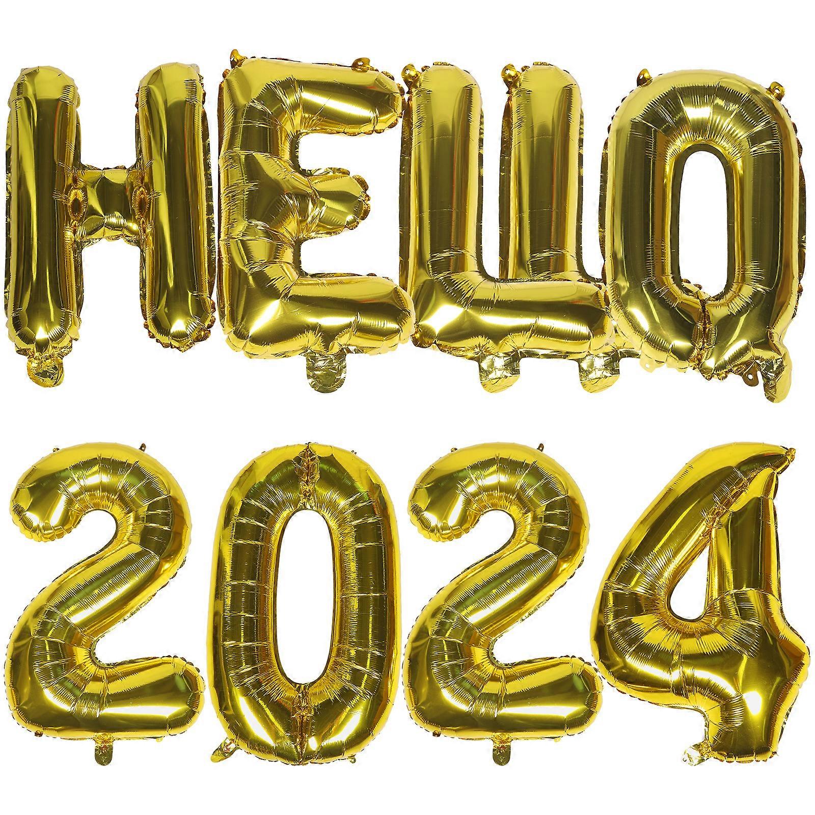 1 Set Hello-2024 Aluminum Film Balloons Party Decorative Balloons 2024 New Year Balloons